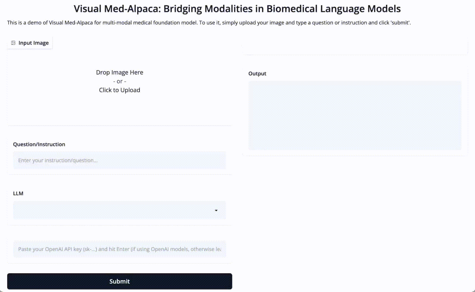 To incorporate biomedical knowledge and visual modality into the foundation model LLaMA-7B, we carried out fine-tuning using two distinct datasets. Initially, we performed standard fine-tuning and low-rank adaptation (LoRA) fine-tuning on LLaMA-7B model using a model-generated dataset comprising of 54,000 biomedical examples for instruction-tuning purposes. Secondly, we fine-tuned the Microsoft GIT model on the Radiology Objects in Context (ROCO) dataset to incorporate visual modality.