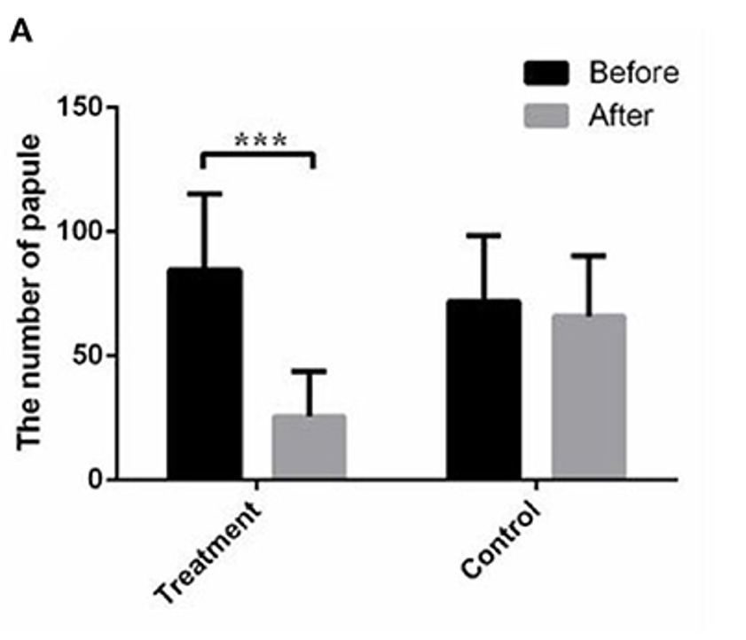 - ChatGPT (GPT-3.5-Turbo, Text-only): I'm sorry, but I need more information to provide an accurate answer. There are many different types of papules, which are small, raised bumps on the skin, and each type may require different treatments. Additionally, the effectiveness of any particular treatment can depend on various factors, such as the severity of the condition, the individual's overall health, and the specifics of the treatment itself. If you can provide more information about the specific type of papule you are referring to and the treatment in question, I may be able to provide a more helpful answer.